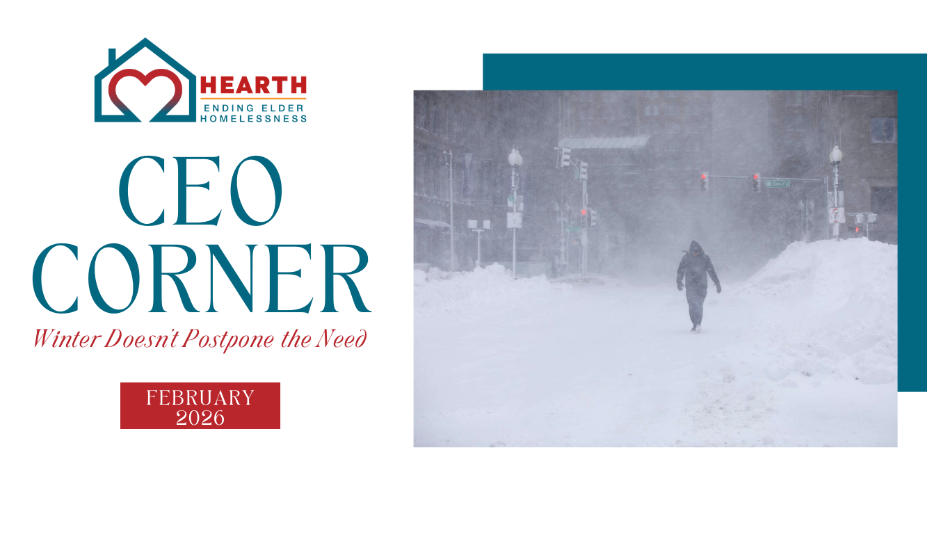 If you are able, I encourage you to join Team Hearth for the rescheduled walk on March 22. Walk alongside us in solidarity with older adults who deserve stability, dignity, and community. If you cannot attend, please consider donating to Team Hearth. Your gift directly funds permanent supportive housing, outreach, and prevention services for older adults in crisis.